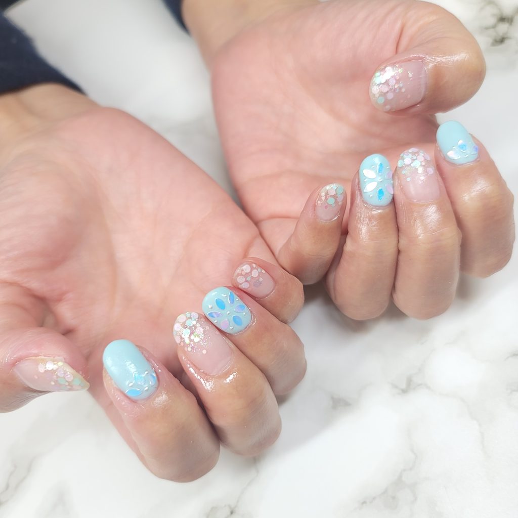 ポイント:パステルなワンカラーにホロで模様を描けば、個性が際立ち、おしゃれ感アップ!