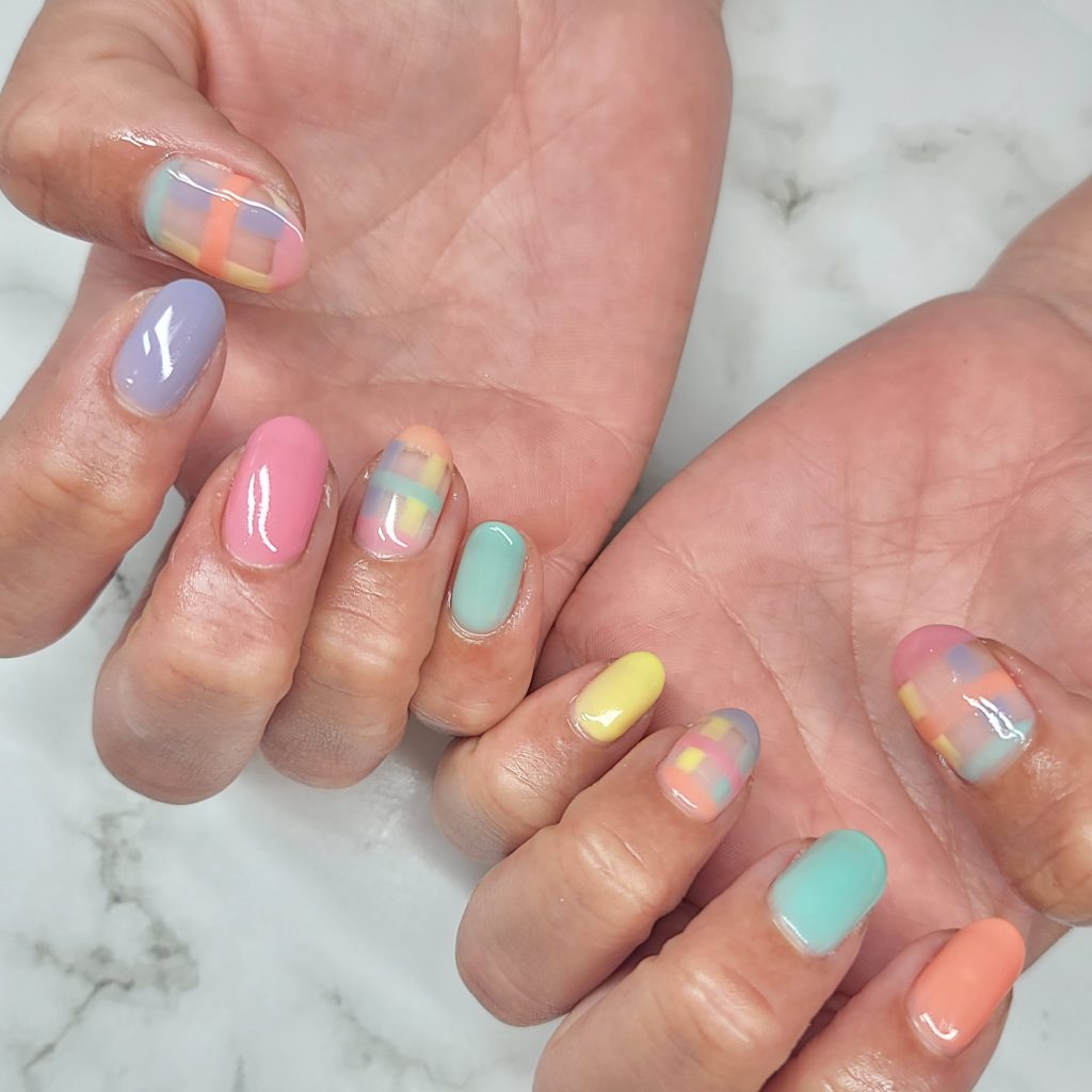 ポイント:奥行きを出すレイヤードデザインで、こなれ感のあるイースターネイルに!
