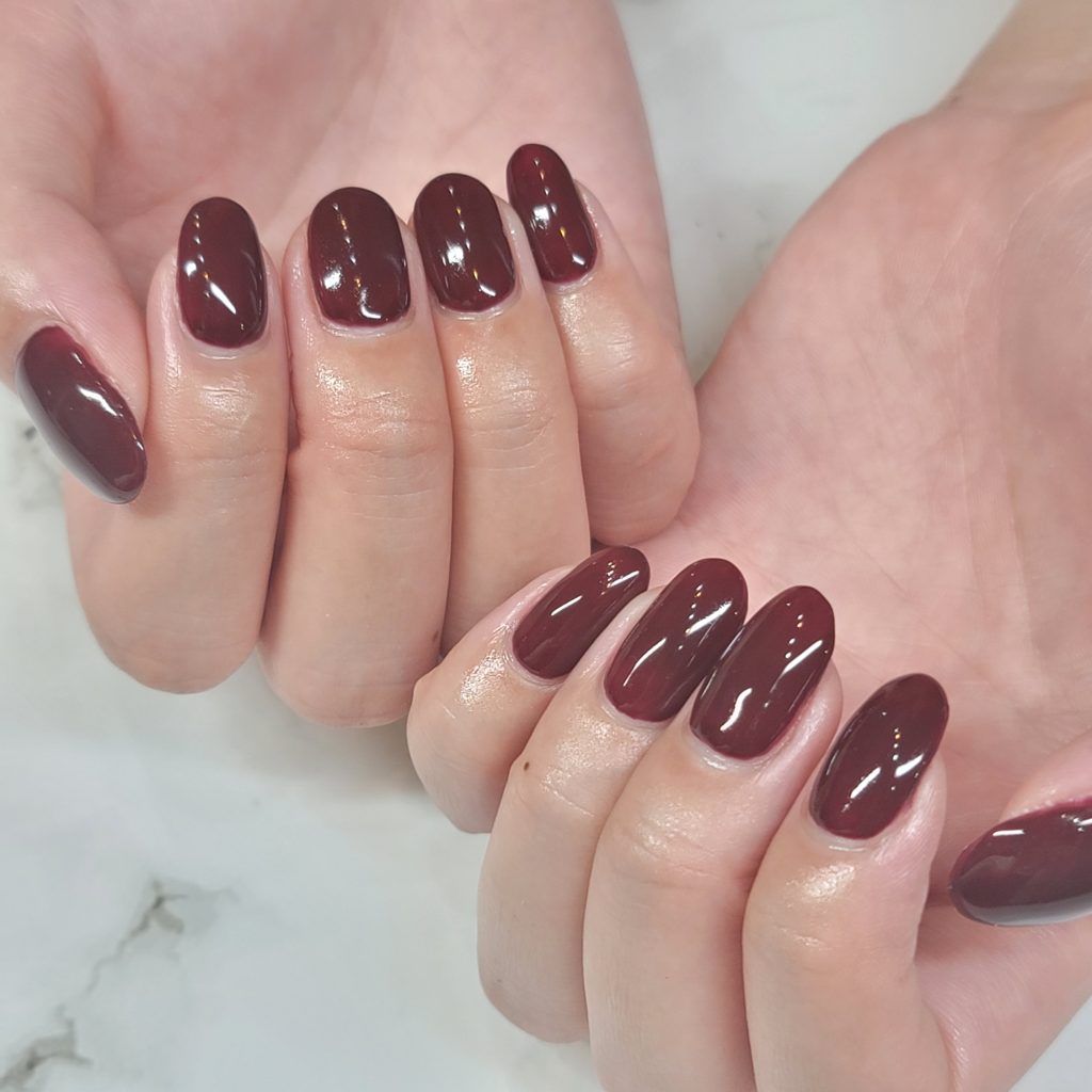 マットな仕上がりは秋冬シーズンに特に人気です。くすみ系カラーやダークトーンを取り入れると、季節感のあるおしゃれな手元を演出できます。