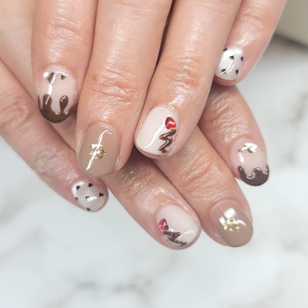 くすみ系やダークトーンのマットカラーは、季節感を取り入れた大人っぽいデザインにぴったりです。